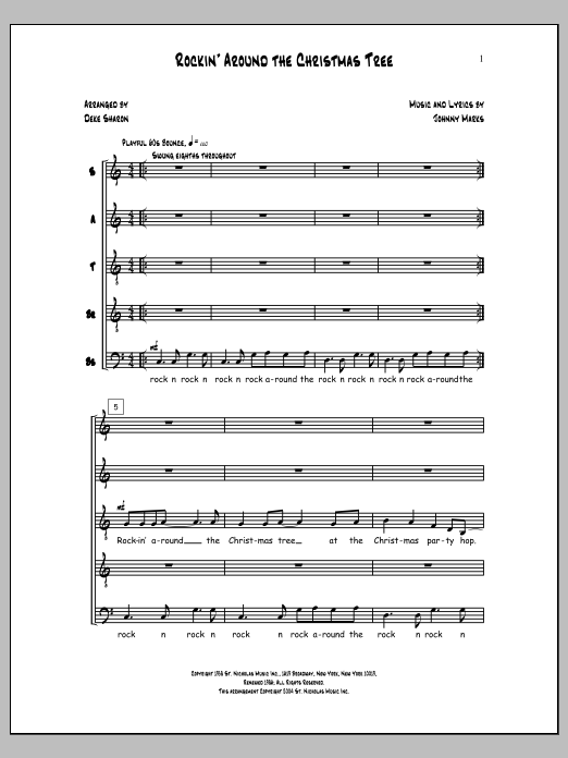 Download or print Deke Sharon Rockin' Around The Christmas Tree sheet music, chords and digital score arranged for SATBB Choir. This A Cappella score includes 10 page(s).
