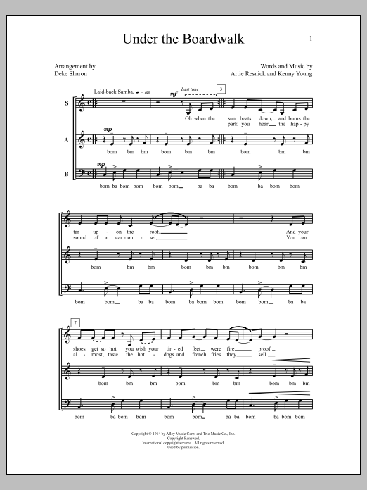 Download or print Deke Sharon Under The Boardwalk sheet music, chords and digital score arranged for SATB Choir. This A Cappella score includes 6 page(s).