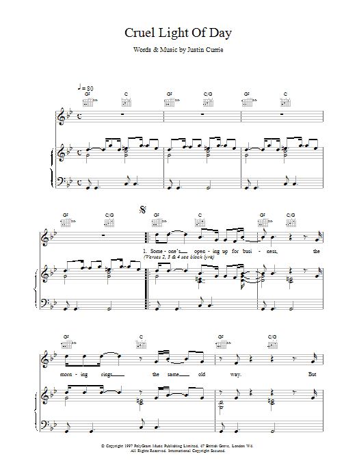 Download or print Del Amitri Cruel Light Of Day sheet music, chords and digital score arranged for Piano, Vocal & Guitar Chords. This Pop score includes 4 page(s).