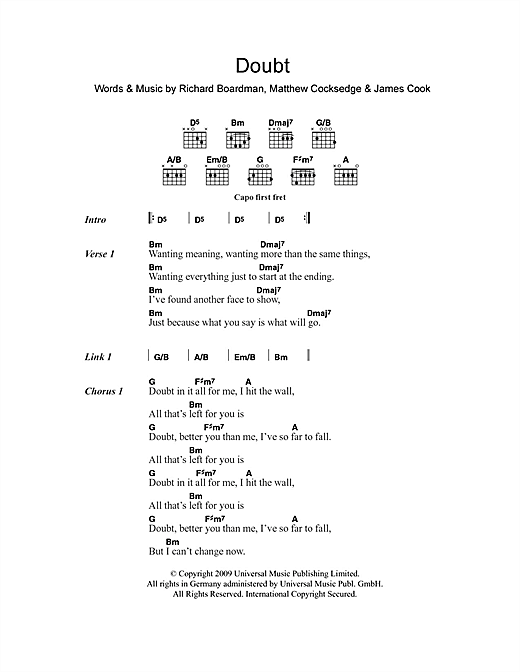 Download or print Delphic Doubt sheet music, chords and digital score arranged for Guitar Chords/Lyrics. This Pop score includes 2 page(s).