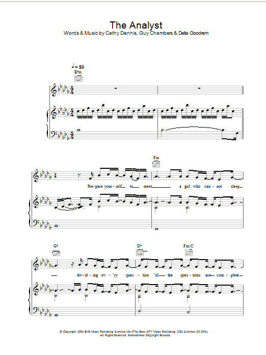 Download or print Delta Goodrem The Analyst sheet music, chords and digital score arranged for Piano, Vocal & Guitar Chords. This Pop score includes 9 page(s).