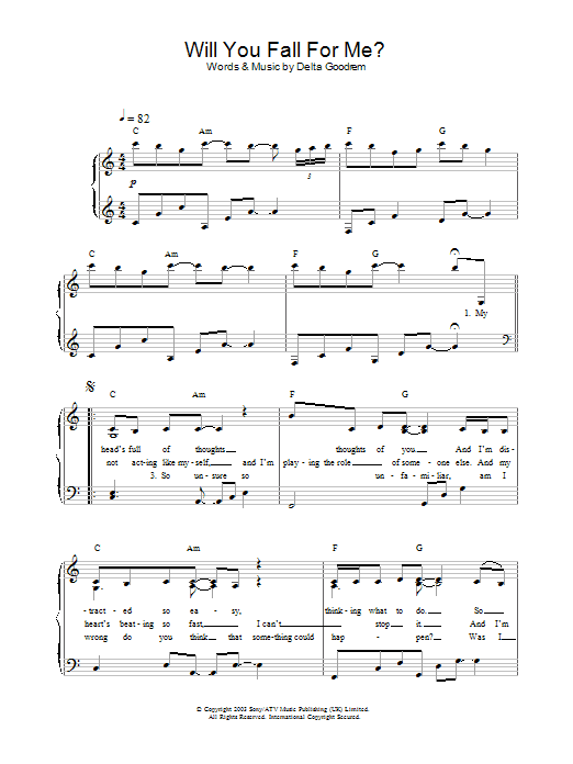 Download or print Delta Goodrem Will You Fall For Me? sheet music, chords and digital score arranged for Piano Solo. This Pop score includes 4 page(s).