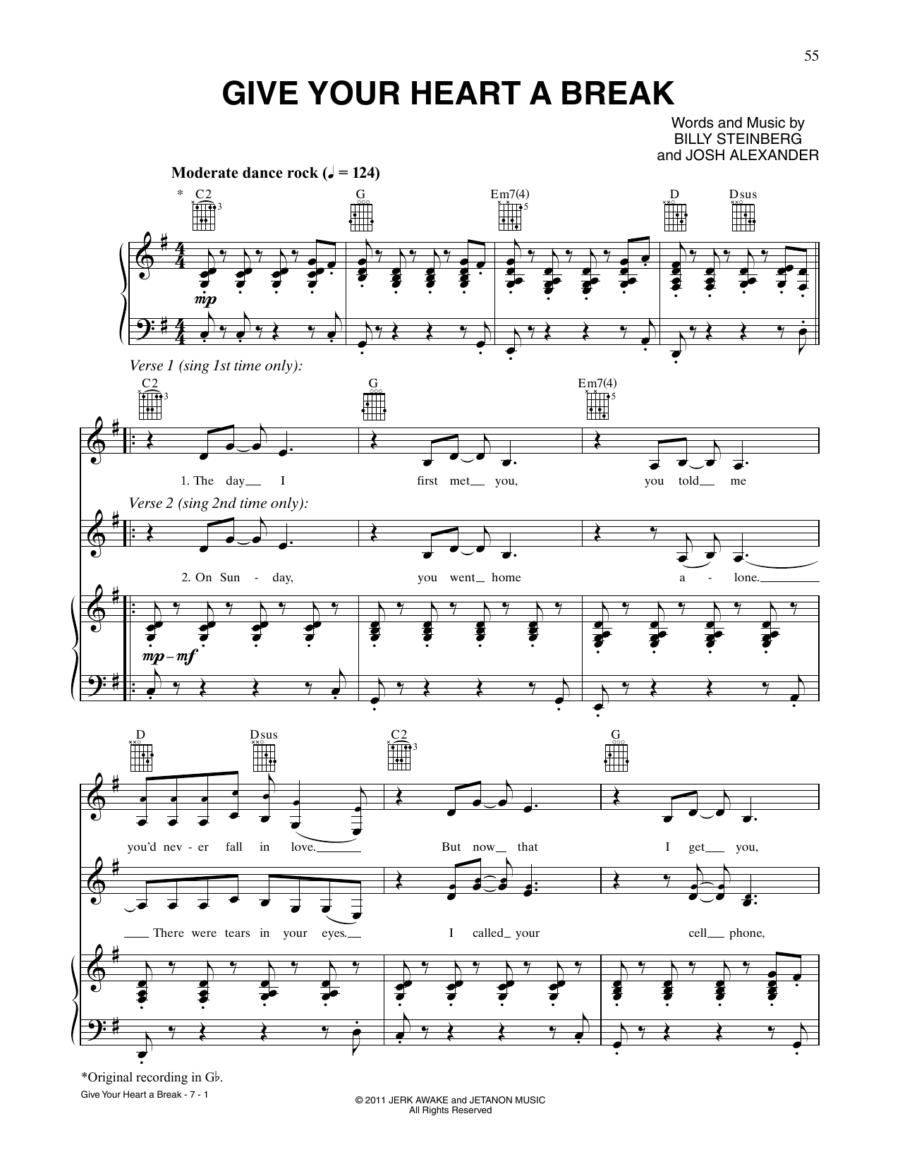 Quick facts Give Your Heart A Break about digital sheet music