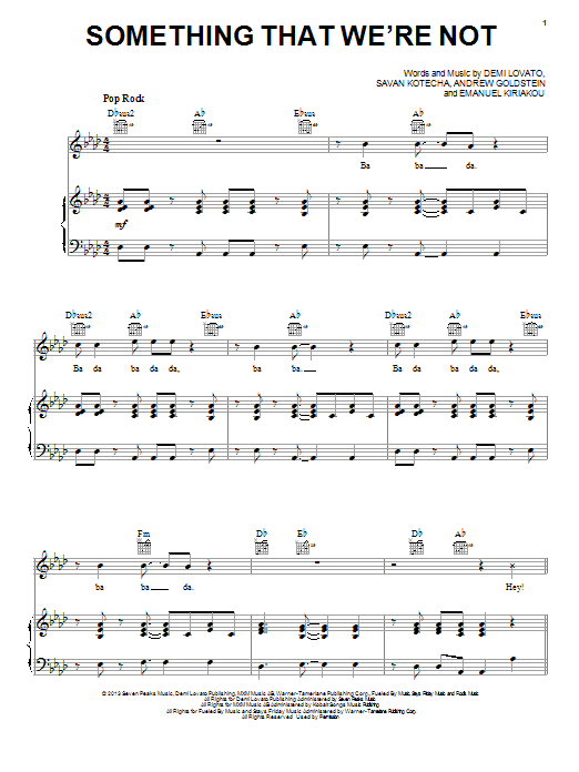 Download or print Demi Lovato Something That We're Not sheet music, chords and digital score arranged for Piano, Vocal & Guitar Chords (Right-Hand Melody). This Pop score includes 7 page(s).