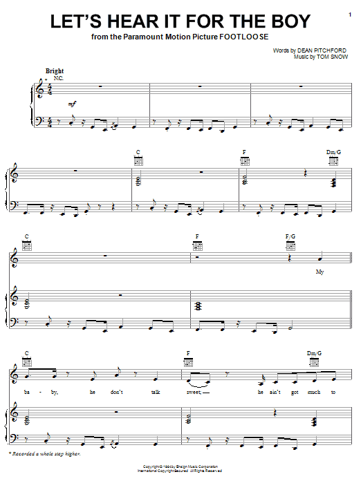 Quick facts Let's Hear It for the Boy about digital sheet music