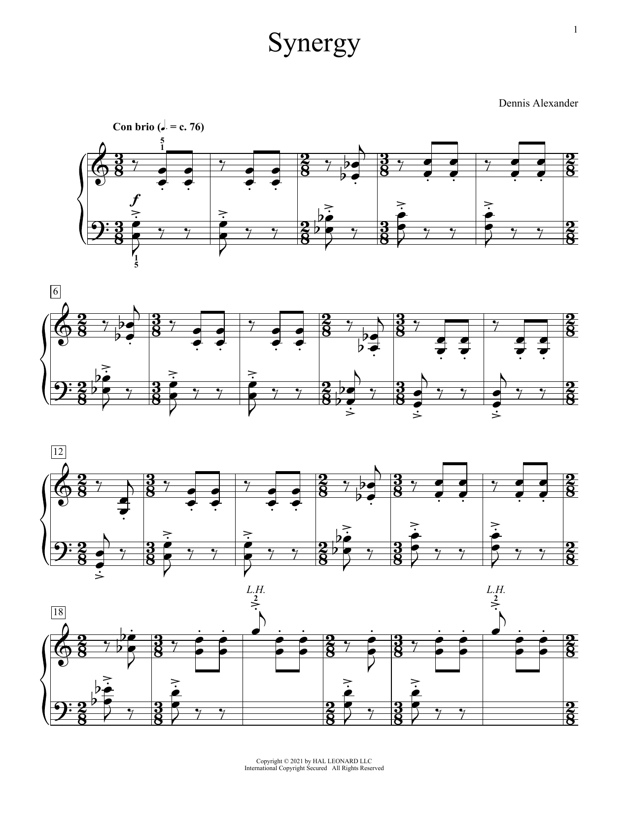 Download or print Dennis Alexander Synergy sheet music, chords and digital score arranged for Educational Piano. This Instructional score includes 3 page(s).