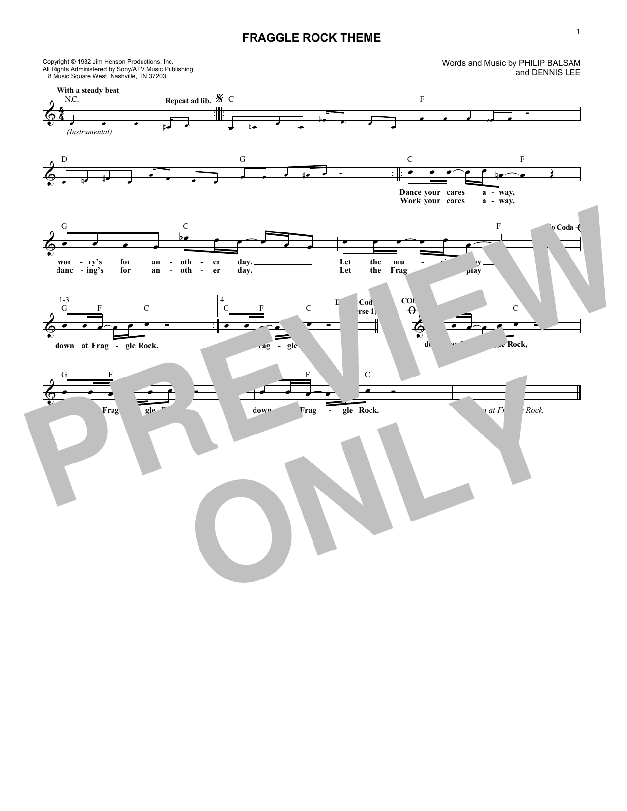Download or print Dennis Beynon Lee Fraggle Rock Theme sheet music, chords and digital score arranged for Lead Sheet / Fake Book. This Children score includes 1 page(s).