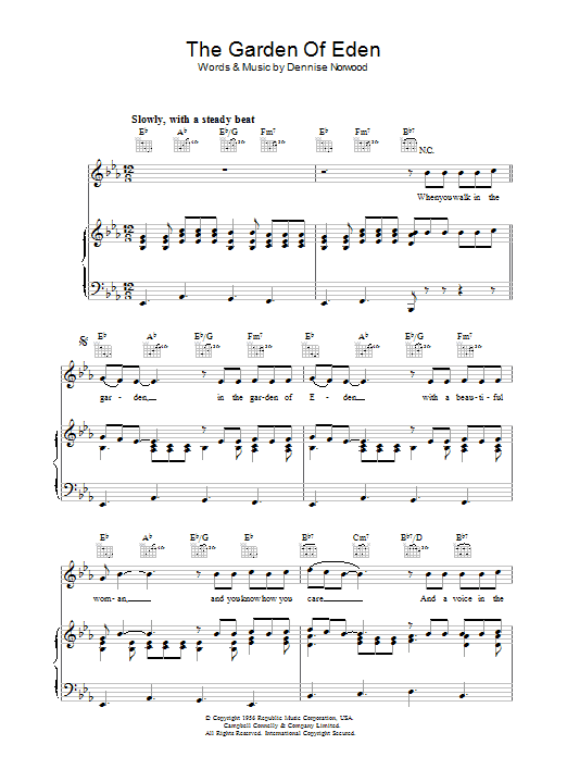 Download or print Dennise Norwood The Garden Of Eden sheet music, chords and digital score arranged for Piano, Vocal & Guitar Chords. This Pop score includes 4 page(s).