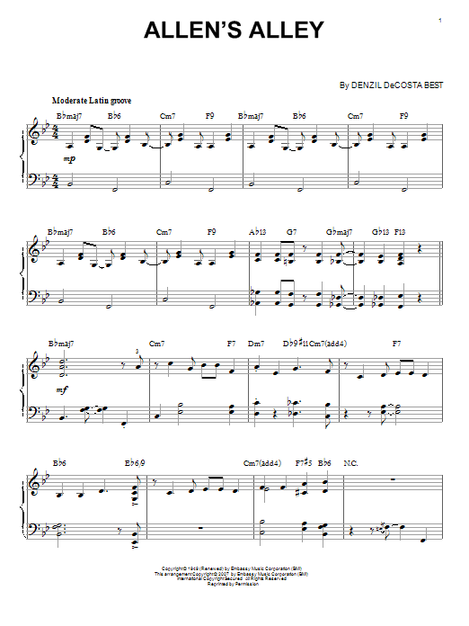 Download or print Denzil DeCosta Best Allen's Alley sheet music, chords and digital score arranged for Piano Solo. This Jazz score includes 4 page(s).