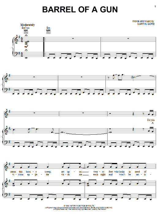 Download or print Depeche Mode Barrel Of A Gun sheet music, chords and digital score arranged for Piano, Vocal & Guitar Chords (Right-Hand Melody). This Pop score includes 6 page(s).