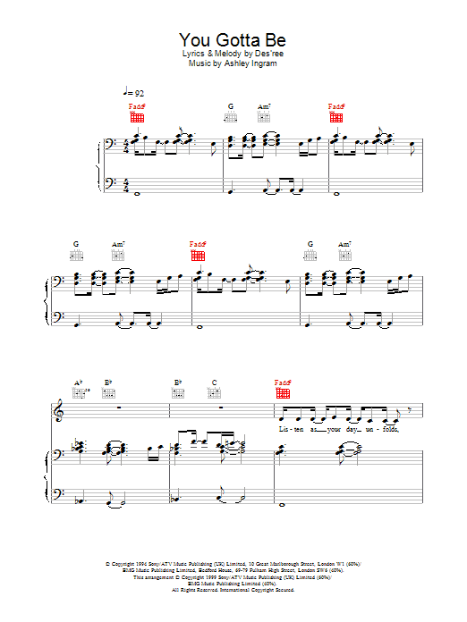 Download or print Des'ree You Gotta Be sheet music, chords and digital score arranged for Lead Sheet / Fake Book. This Pop score includes 2 page(s).