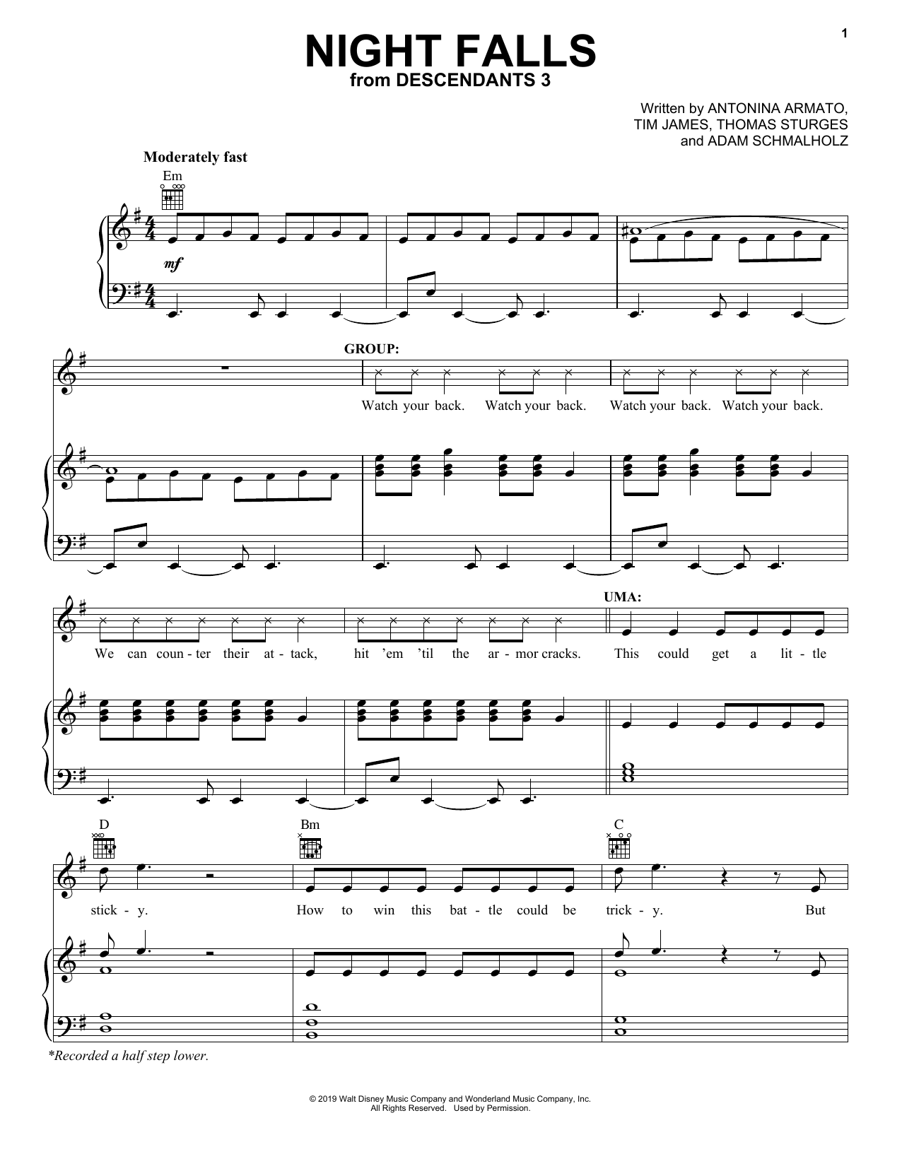Quick facts Night Falls (from Disney's Descendants 3) about digital sheet music