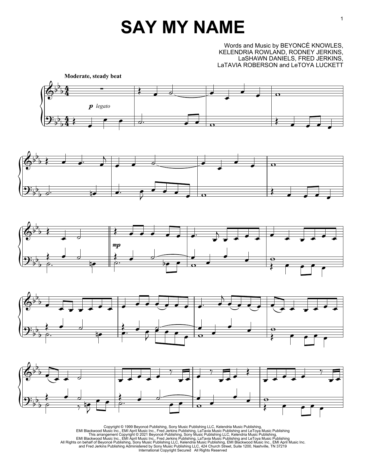 Download or print Destiny's Child Say My Name [Classical version] sheet music, chords and digital score arranged for Piano Solo. This Pop score includes 4 page(s).