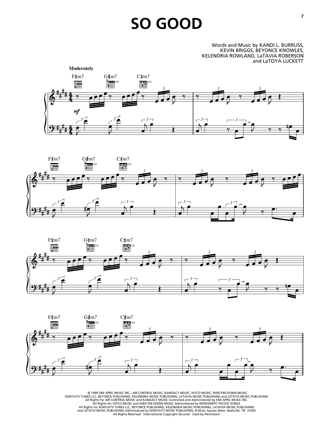 Download or print Destiny's Child So Good sheet music, chords and digital score arranged for Piano, Vocal & Guitar Chords (Right-Hand Melody). This Pop score includes 5 page(s).