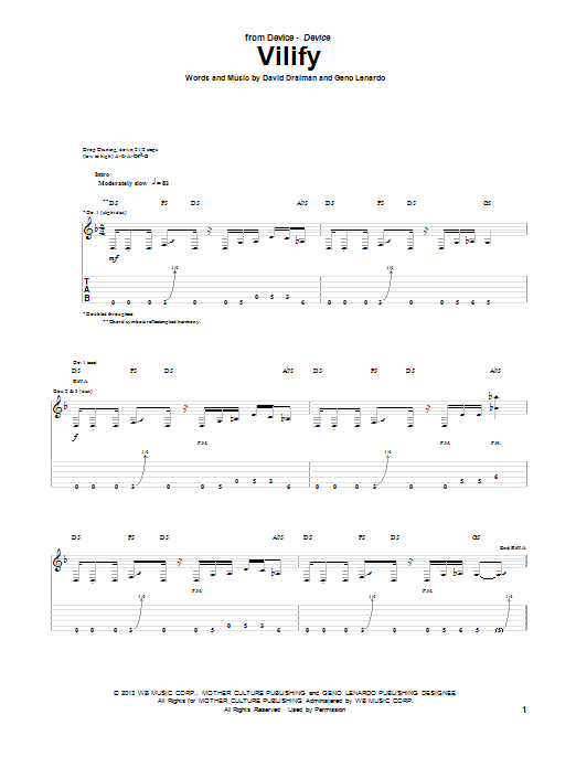 Download or print Device Vilify sheet music, chords and digital score arranged for Guitar Tab. This Pop score includes 7 page(s).