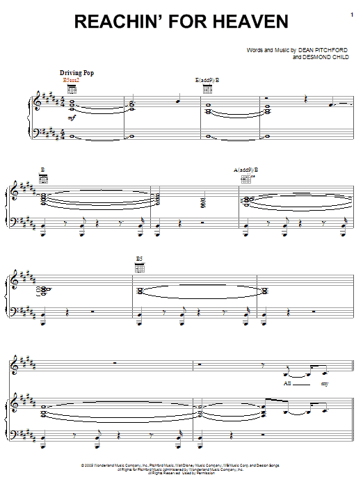 Download or print Diana DeGarmo Reachin' For Heaven sheet music, chords and digital score arranged for Piano, Vocal & Guitar Chords (Right-Hand Melody). This Film/TV score includes 9 page(s).