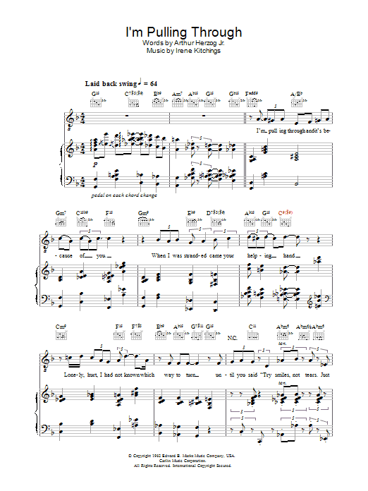 Download or print Diana Krall I'm Pulling Through sheet music, chords and digital score arranged for Piano, Vocal & Guitar Chords. This Jazz score includes 7 page(s).