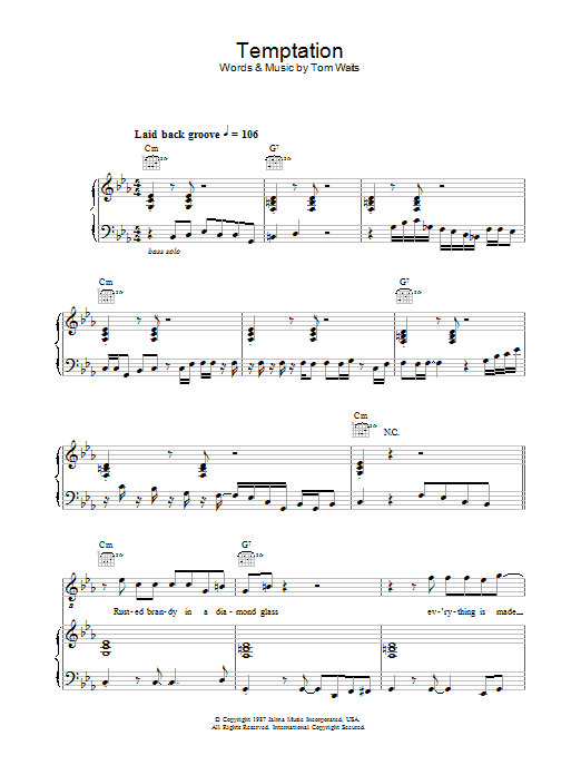 Download or print Diana Krall Temptation sheet music, chords and digital score arranged for Piano, Vocal & Guitar Chords. This Jazz score includes 7 page(s).