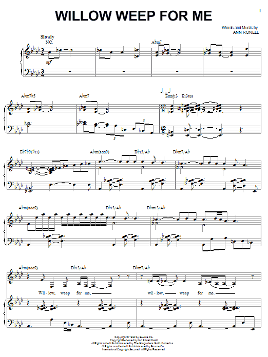 Download or print Diana Krall Willow Weep For Me sheet music, chords and digital score arranged for Piano & Vocal. This Jazz score includes 8 page(s).