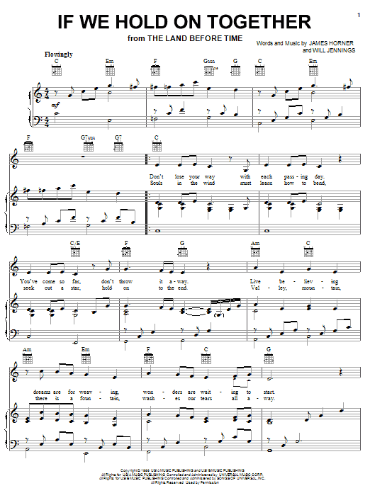 Download or print Diana Ross If We Hold On Together sheet music, chords and digital score arranged for Piano, Vocal & Guitar Chords (Right-Hand Melody). This Film/TV score includes 4 page(s).