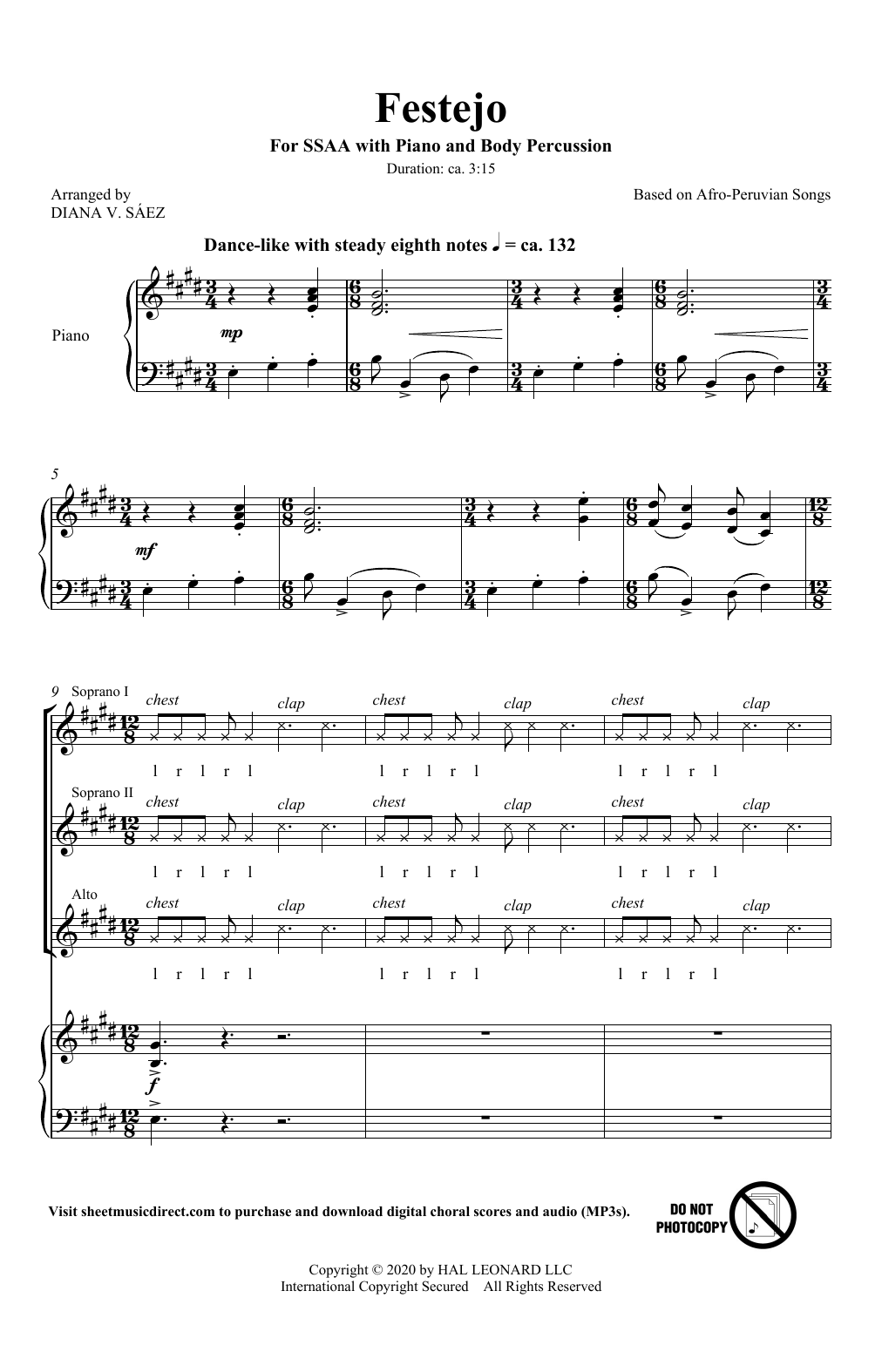 Download or print Diana Saez Festejo sheet music, chords and digital score arranged for SSA Choir. This Concert score includes 14 page(s).