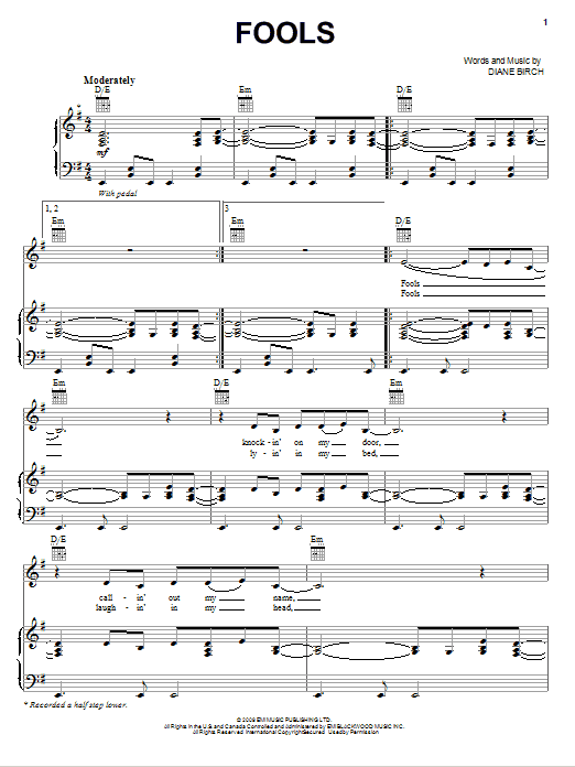 Download or print Diane Birch Fools sheet music, chords and digital score arranged for Piano, Vocal & Guitar Chords (Right-Hand Melody). This Blues score includes 6 page(s).