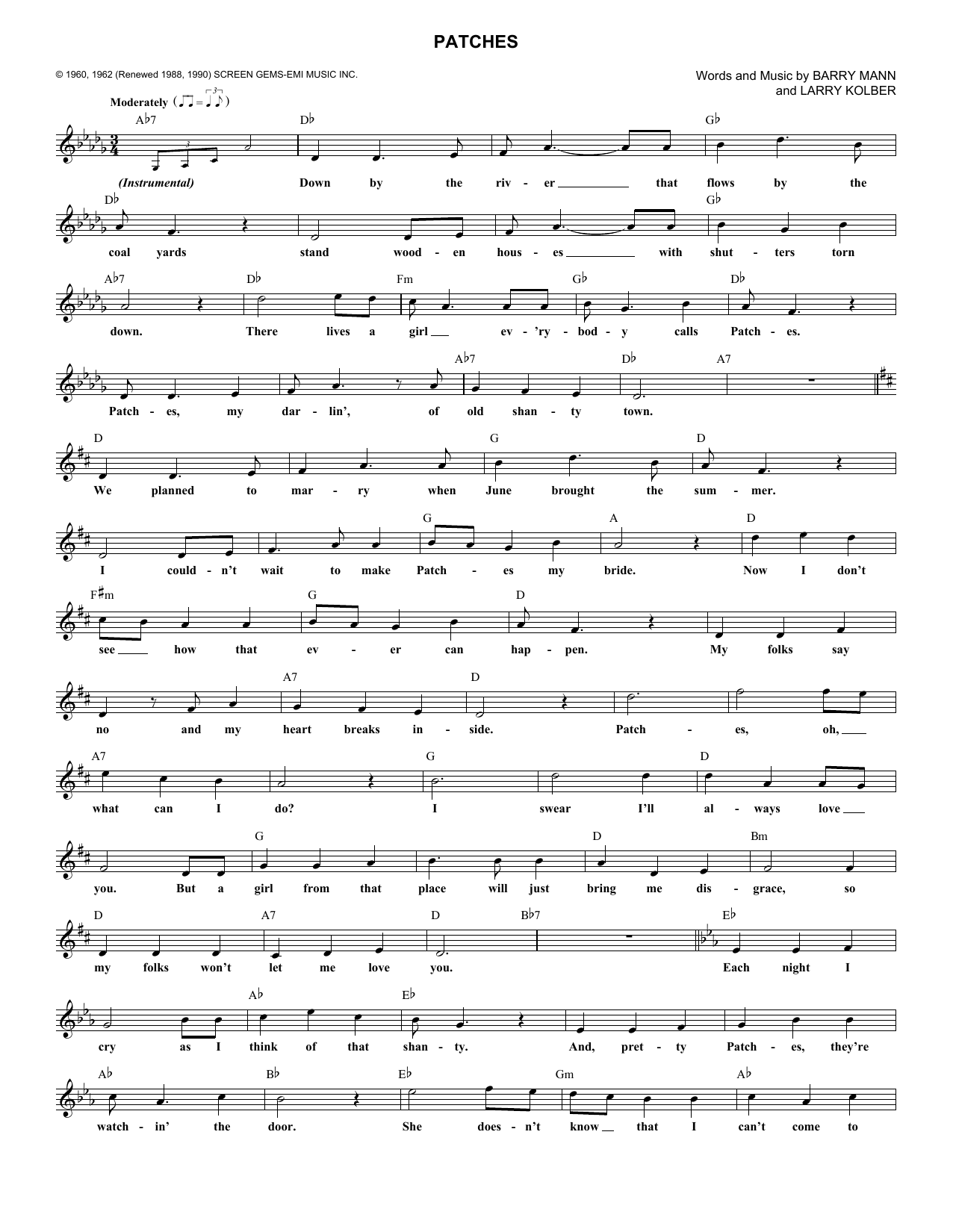 Download or print Dickey Lee Patches sheet music, chords and digital score arranged for Lead Sheet / Fake Book. This Pop score includes 2 page(s).