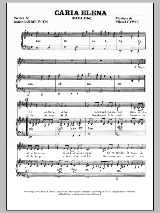 Download or print Didier Barbelivien Caria Elena sheet music, chords and digital score arranged for Piano & Vocal. This Pop score includes 3 page(s).