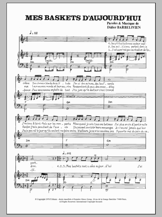 Download or print Didier Barbelivien Mes Baskets D'aujourd'hui sheet music, chords and digital score arranged for Piano & Vocal. This Pop score includes 2 page(s).