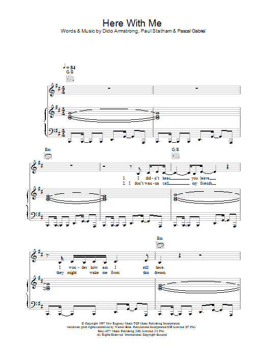 Download or print Dido Here With Me sheet music, chords and digital score arranged for Alto Sax Solo. This Pop score includes 2 page(s).
