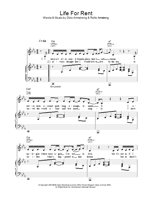 Download or print Dido Life For Rent sheet music, chords and digital score arranged for Flute Solo. This Pop score includes 3 page(s).