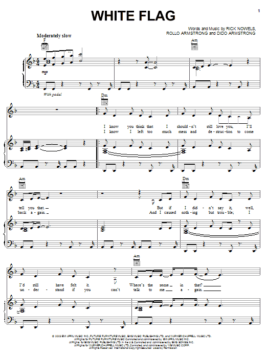 Download or print Dido White Flag sheet music, chords and digital score arranged for Guitar Chords/Lyrics. This Pop score includes 2 page(s).