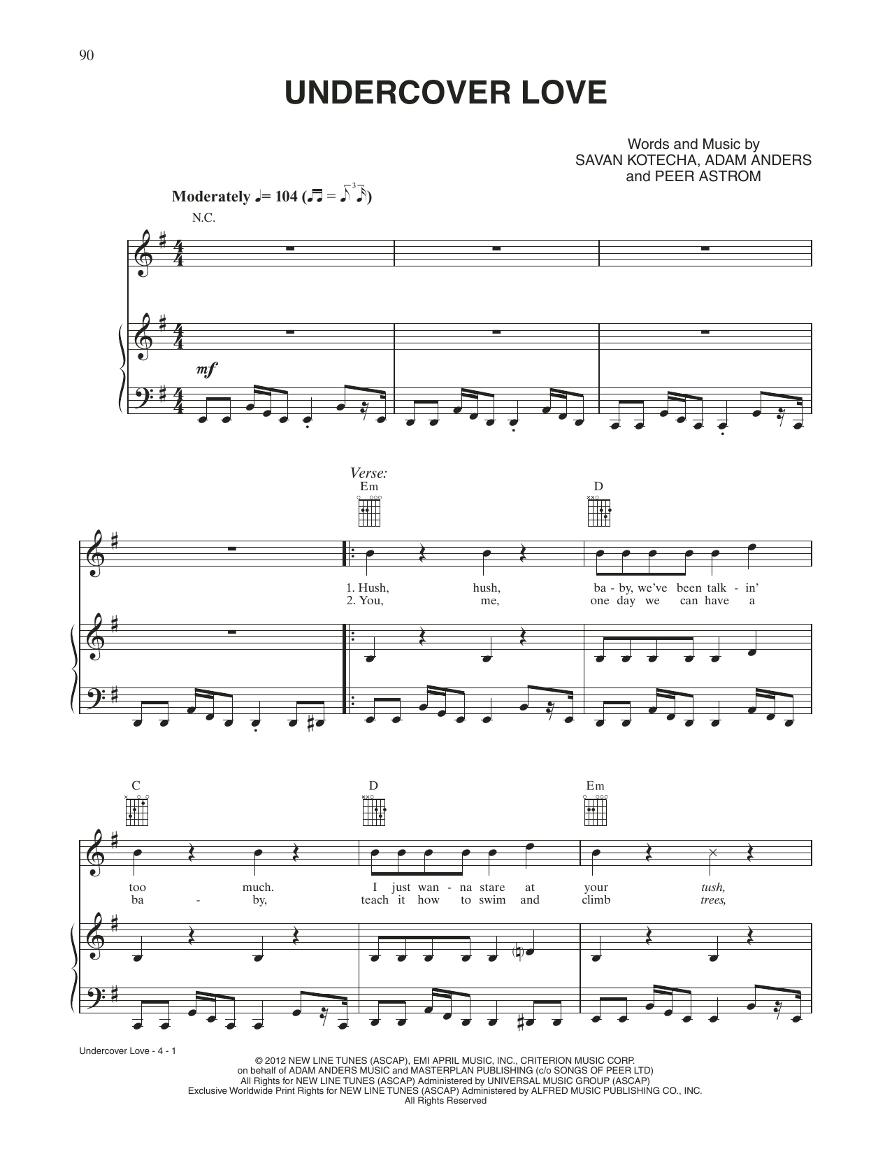 Download or print Diego Boneta Undercover Love (from Rock Of Ages) sheet music, chords and digital score arranged for Piano, Vocal & Guitar Chords (Right-Hand Melody). This Pop score includes 4 page(s).
