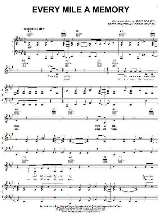 Download or print Dierks Bentley Every Mile A Memory sheet music, chords and digital score arranged for Easy Guitar Tab. This Country score includes 4 page(s).