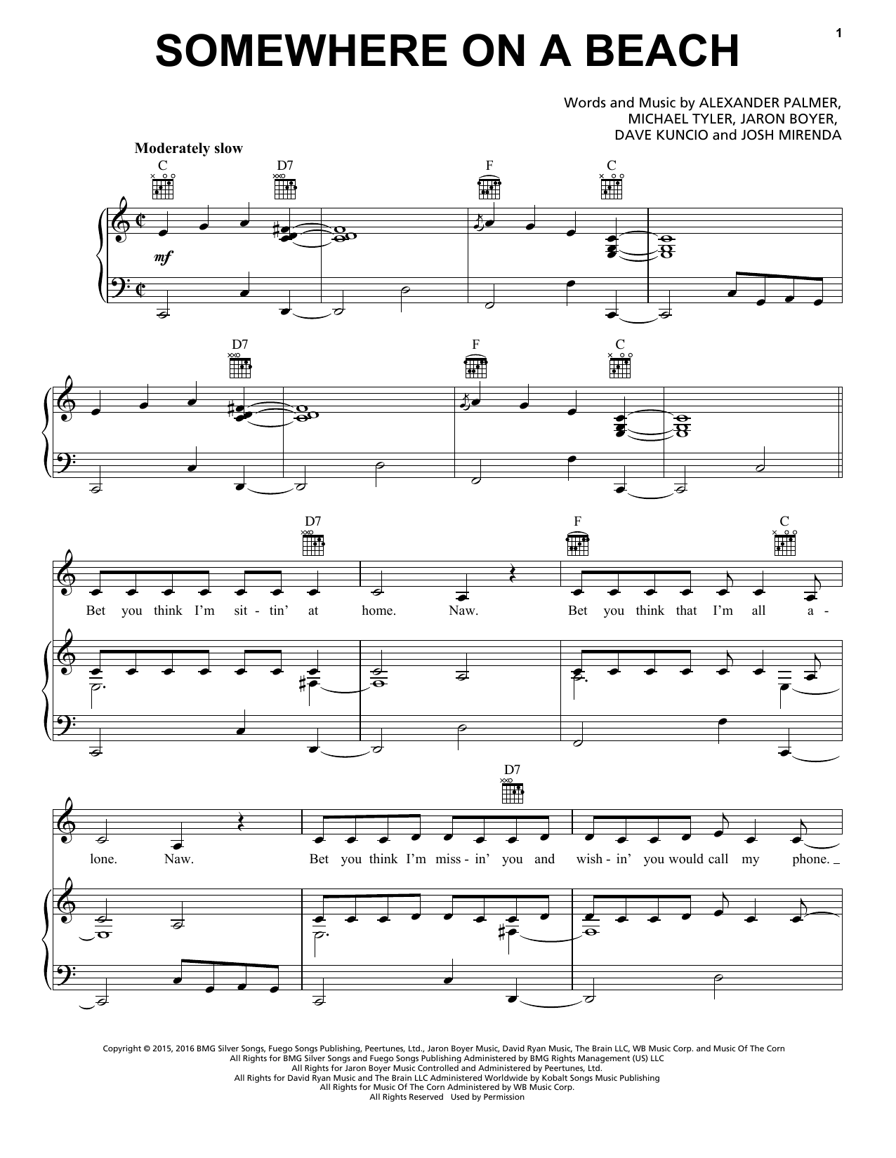 Download or print Dierks Bentley Somewhere On A Beach sheet music, chords and digital score arranged for Piano, Vocal & Guitar Chords (Right-Hand Melody). This Country score includes 7 page(s).