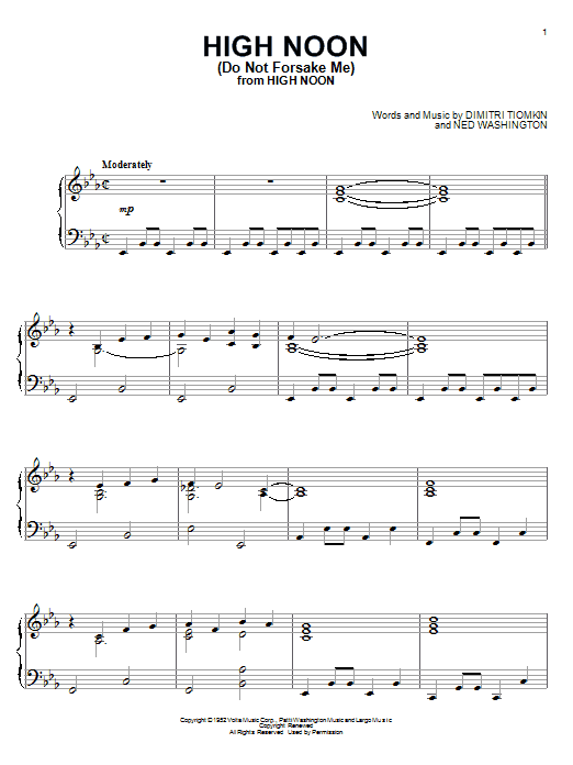 Download or print Dimitri Tiomkin High Noon (Do Not Forsake Me) sheet music, chords and digital score arranged for Easy Piano. This Country score includes 7 page(s).