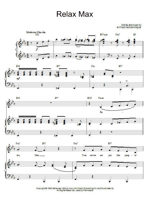 Download or print Dinah Washington Relax Max sheet music, chords and digital score arranged for Piano, Vocal & Guitar Chords (Right-Hand Melody). This Jazz score includes 7 page(s).