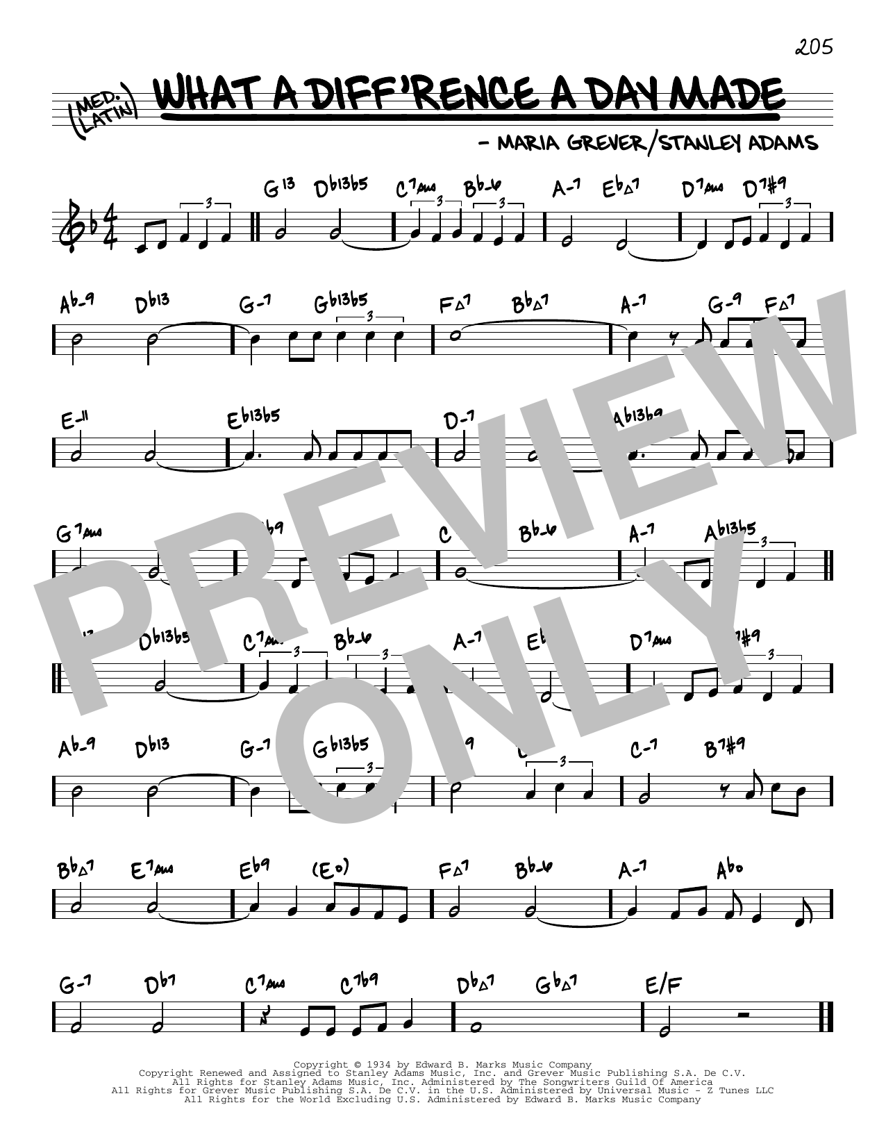 Download or print Dinah Washington What A Diff'rence A Day Made (arr. David Hazeltine) sheet music, chords and digital score arranged for Real Book – Enhanced Chords. This Jazz score includes 1 page(s).