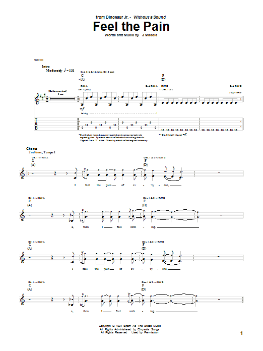 Download or print Dinosaur Jr. Feel The Pain sheet music, chords and digital score arranged for Guitar Tab. This Alternative score includes 5 page(s).
