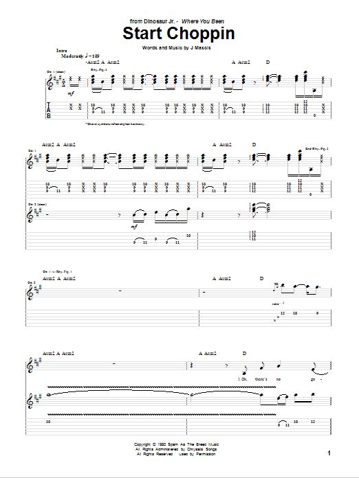 Download or print Dinosaur Jr. Start Choppin sheet music, chords and digital score arranged for Guitar Tab. This Pop score includes 12 page(s).