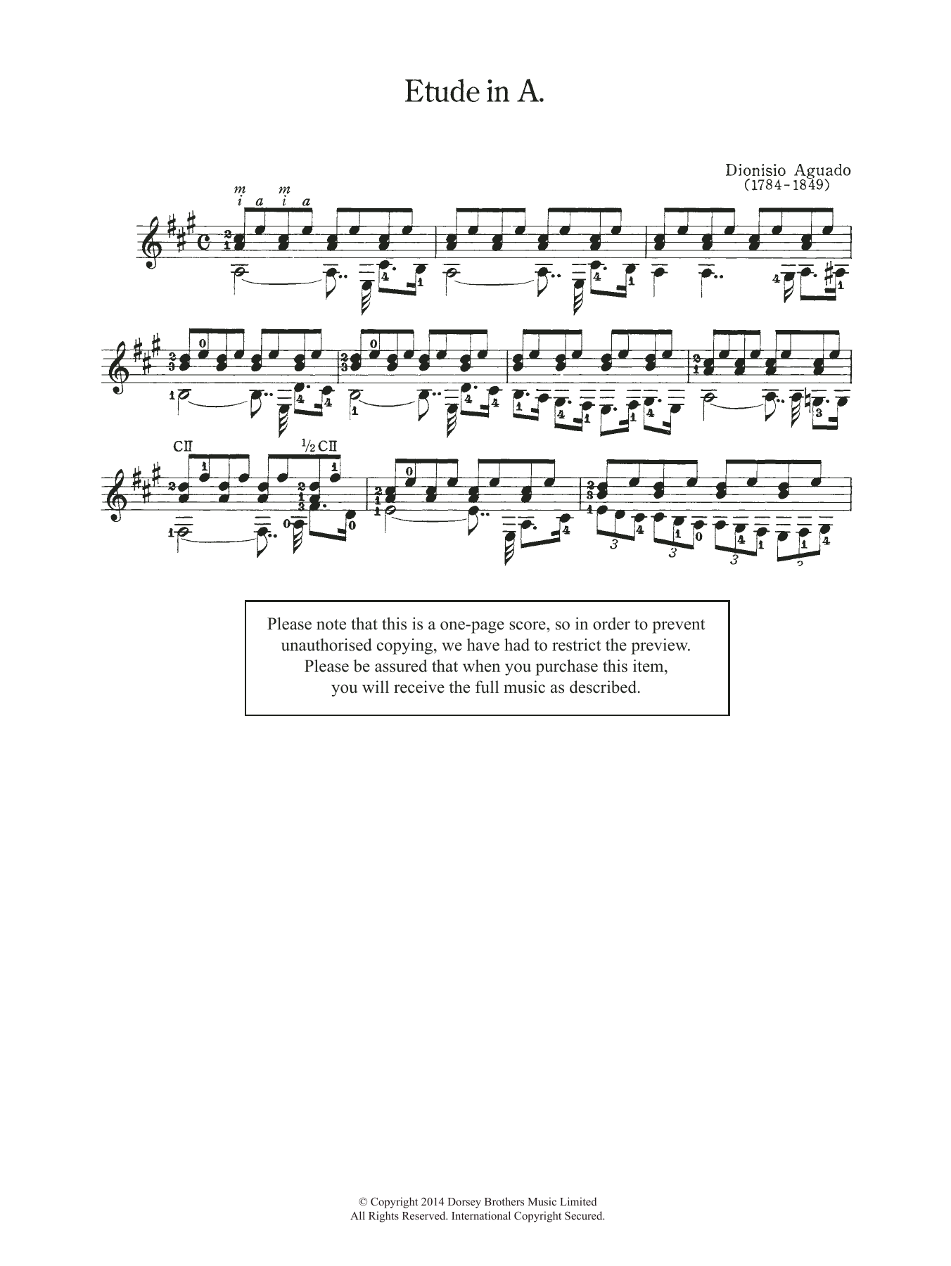 Download or print Dionisio Aguado Etude In A sheet music, chords and digital score arranged for Easy Guitar. This Classical score includes 2 page(s).