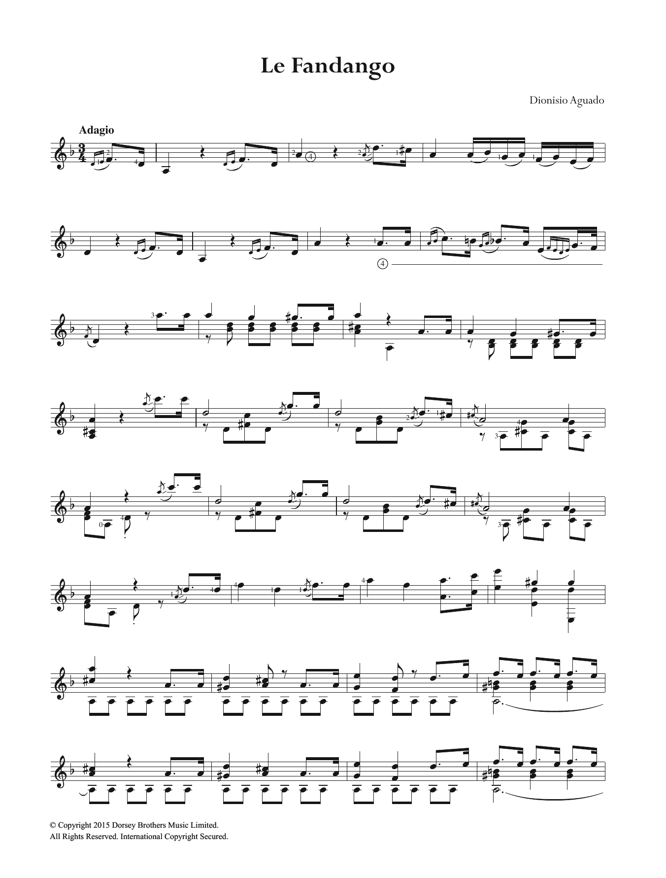Download or print Dionisio Aguado Le Fandango sheet music, chords and digital score arranged for Easy Guitar. This Classical score includes 9 page(s).