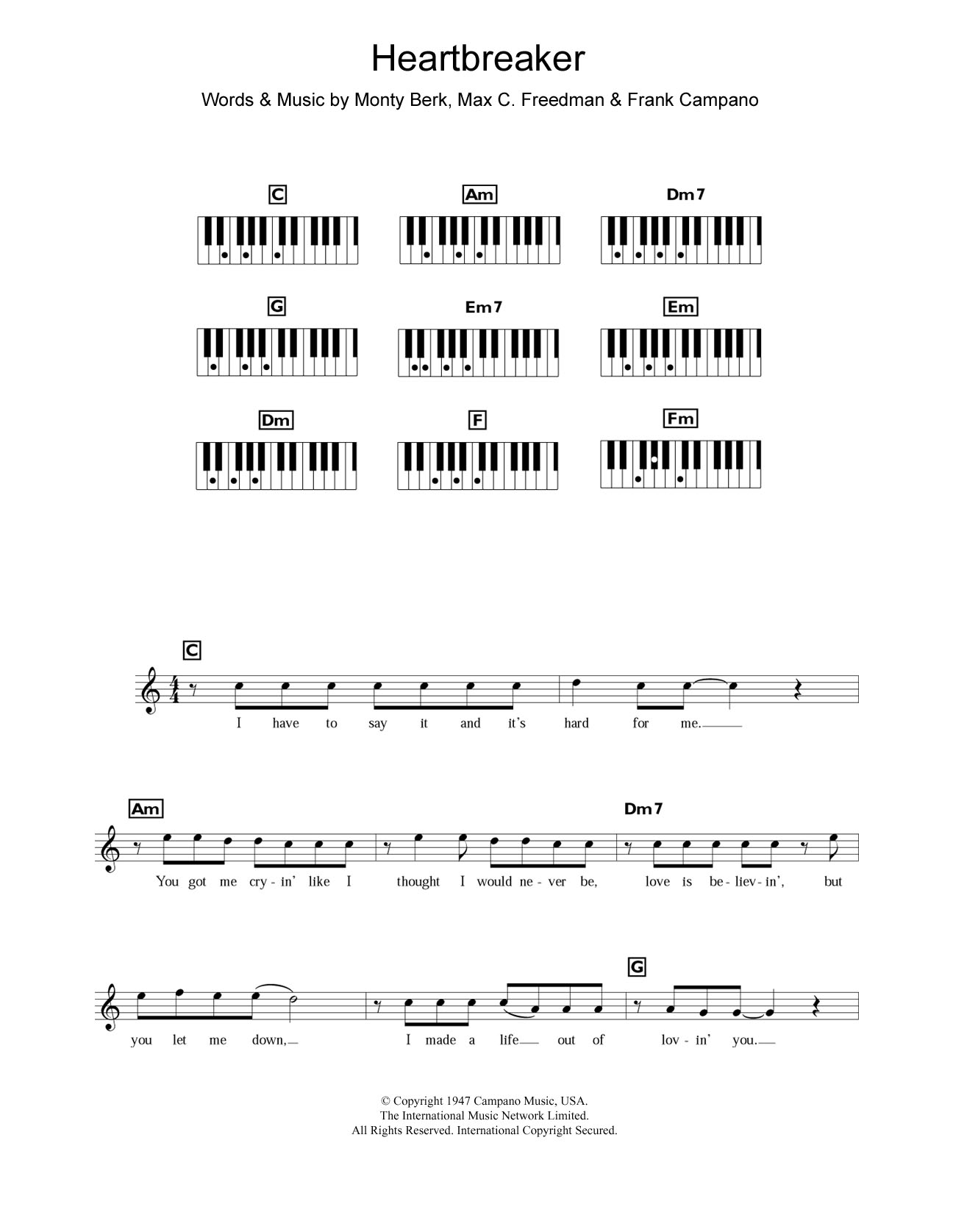 Download or print Dionne Warwick Heartbreaker sheet music, chords and digital score arranged for Piano Chords/Lyrics. This Pop score includes 2 page(s).