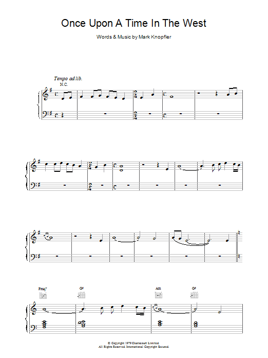 Download or print Dire Straits Once Upon A Time In The West sheet music, chords and digital score arranged for Guitar Chords/Lyrics. This Rock score includes 2 page(s).