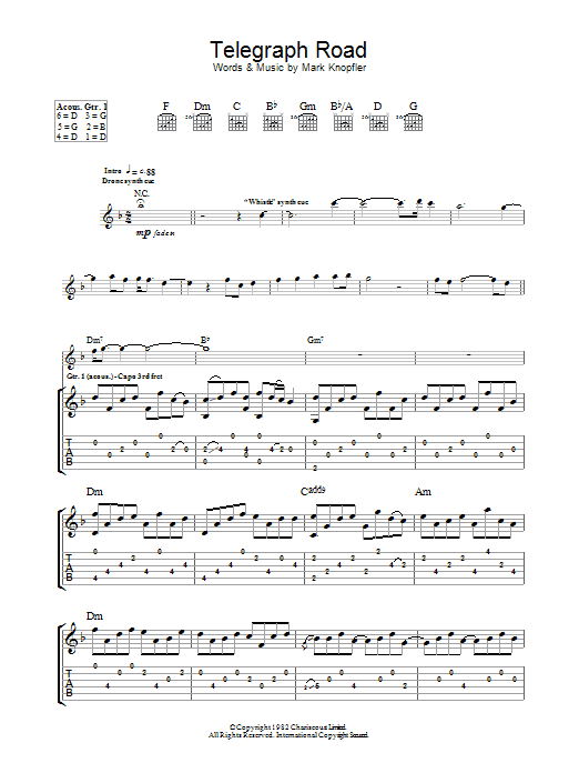 Download or print Dire Straits Telegraph Road sheet music, chords and digital score arranged for Guitar Tab. This Rock score includes 23 page(s).