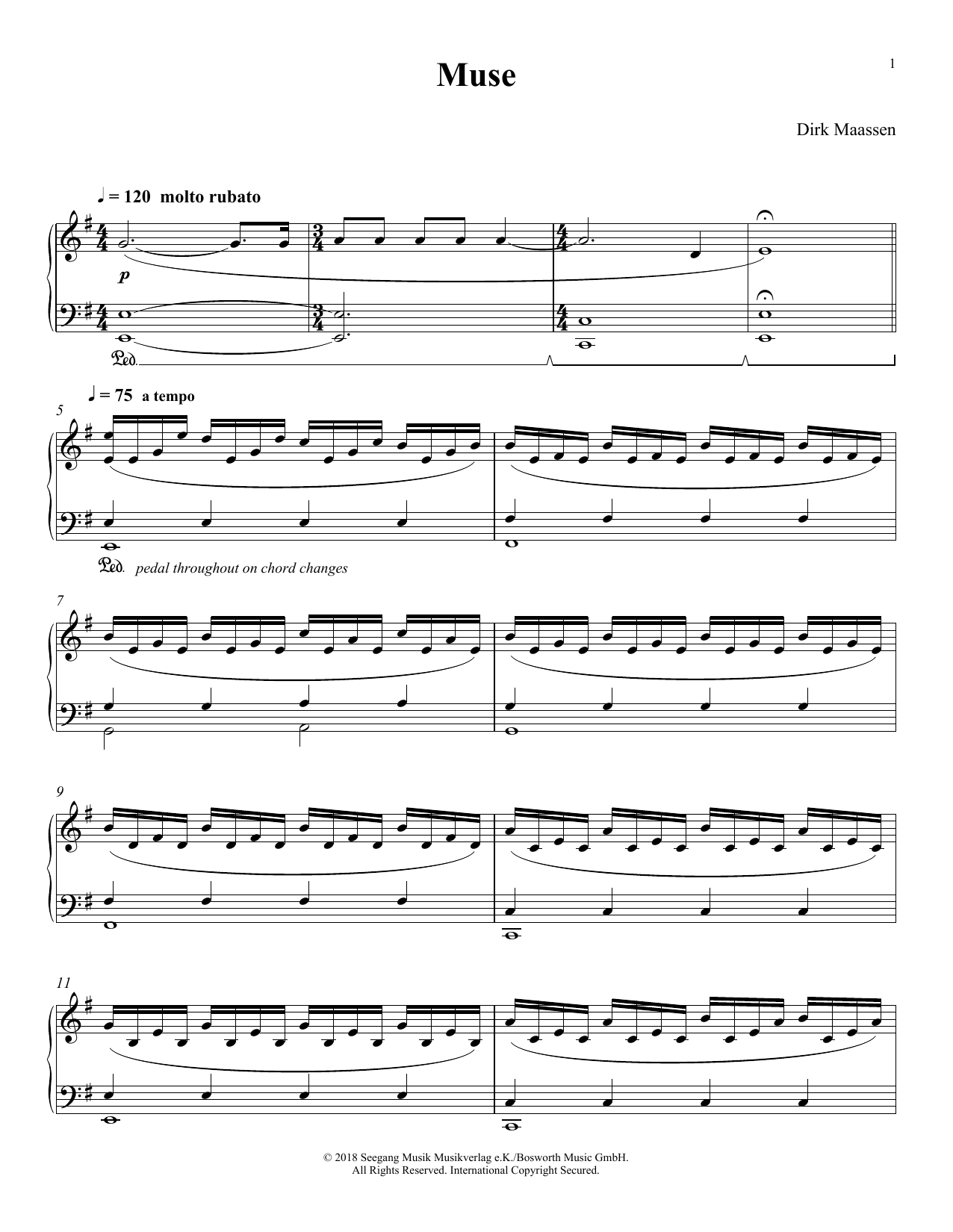 Download or print Dirk Maassen Muse sheet music, chords and digital score arranged for Piano Solo. This Contemporary score includes 5 page(s).