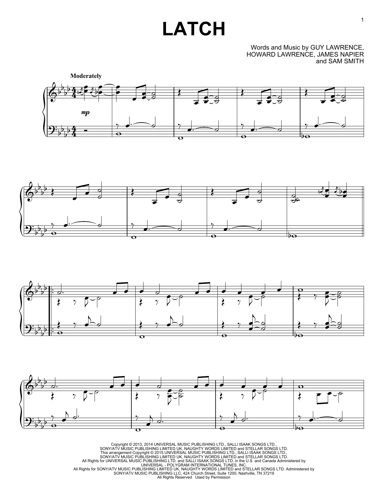 Download or print Disclosure feat. Sam Smith Latch sheet music, chords and digital score arranged for Piano Solo. This Love score includes 4 page(s).