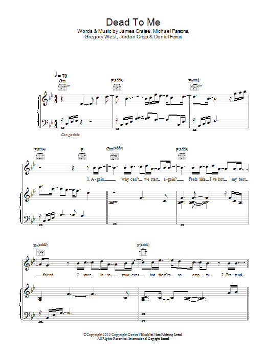 Download or print District 3 Dead To Me sheet music, chords and digital score arranged for Piano, Vocal & Guitar Chords. This Pop score includes 4 page(s).