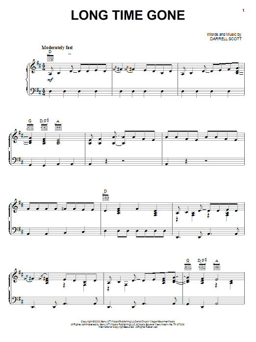 Download or print The Chicks Long Time Gone sheet music, chords and digital score arranged for Piano, Vocal & Guitar Chords (Right-Hand Melody). This Pop score includes 11 page(s).