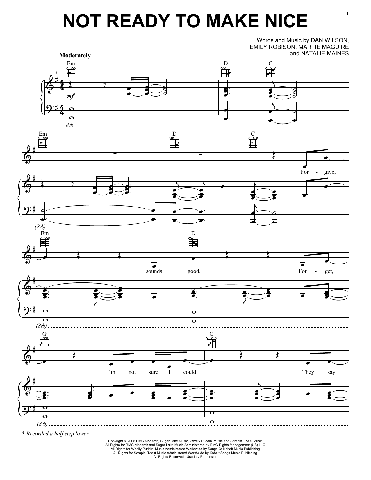 Download or print The Chicks Not Ready To Make Nice sheet music, chords and digital score arranged for Easy Piano. This Pop score includes 6 page(s).